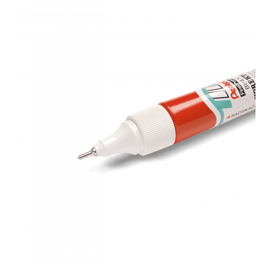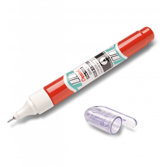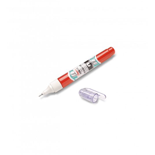 - Klasyczny korektor. - Cienka, okrągła końcówka do precyzyjnego tuszowania najmniejszych błędów. - Końcówka zaworkowa przepuszcza dokładnie wymierzoną ilość płynu i się nie zaciera (w przeciwieństwie do modeli z popularną końcówką kulkową). - Szybkoschnący tusz korygujący gwarantuje gładkie i błyskawiczne pisanie już w chwilę po użyciu korektora. - Pojemność wynosi 7 ml. - Obudowa w czerwonym kolorze. - Nasadka z wygodnym klipem zabezpiecza przed wysychaniem. - Może być stosowany jako biały marker, do dekorowania. - Doskonały do codziennego użytku w domu, szkole, w biurze i pracowni.