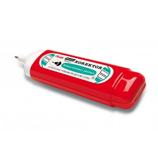 - Klasyczny korektor z płaską obudową. - Cienka, okrągła końcówka do precyzyjnego tuszowania najmniejszych błędów. - Końcówka zaworkowa przepuszcza dokładnie wymierzoną ilość płynu i się nie zaciera (w przeciwieństwie do modeli z popularną końcówką kulkową). - Szybkoschnący tusz korygujący gwarantuje gładkie i błyskawiczne pisanie już w chwilę po użyciu korektora. - Pojemność wynosi 12 ml. - Nasadka z wygodnym klipem zabezpiecza przed wysychaniem. - Może być stosowany jako biały marker, do dekorowania. - Doskonały do codziennego użytku w domu, szkole, w biurze i pracowni.