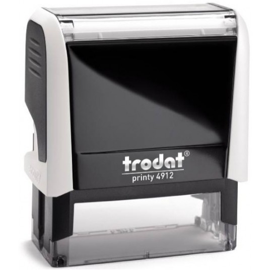 - Kompaktowa pieczątka Trodat Printy 4912. - Maksymalny rozmiar płytki 47x18 mm. - Gwarancja 100 000 odbić. - Posiada wygodną zatyczkę orazrewolucyjny systemem wymiany wkładki. - Dzięki specjalnym uchwytom z bokuwkładki nie ma możliwości ubrudzenia rąk przy jej wymianie. - Posiada półprzezroczyste okienko pozycyjne oraz indeksowe z karteczką i odbiciem treści. - Mechanizm blokady umieszczony z tyłu automatu zabezpiecza przed przypadkowym otwarciem. - Wyprodukowana z odzyskanych materiałów oraz przy zmniejszonej emisji CO2. - Zatyczka w komplecie. - Obudowa: Biała. - Kolor wkładki tuszującej do wyboru: czarny, czerwony, niebieski, zielony, fioletowy, blanco (nienasączony).