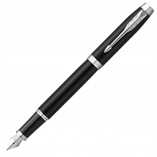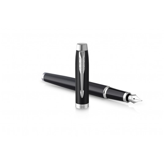 - Korpus oraz skuwkę pióra wiecznego Parker IM Essential Matte Black CT wykonano z mosiądzu pokrytego błyszczącym, czarnym lakierem.