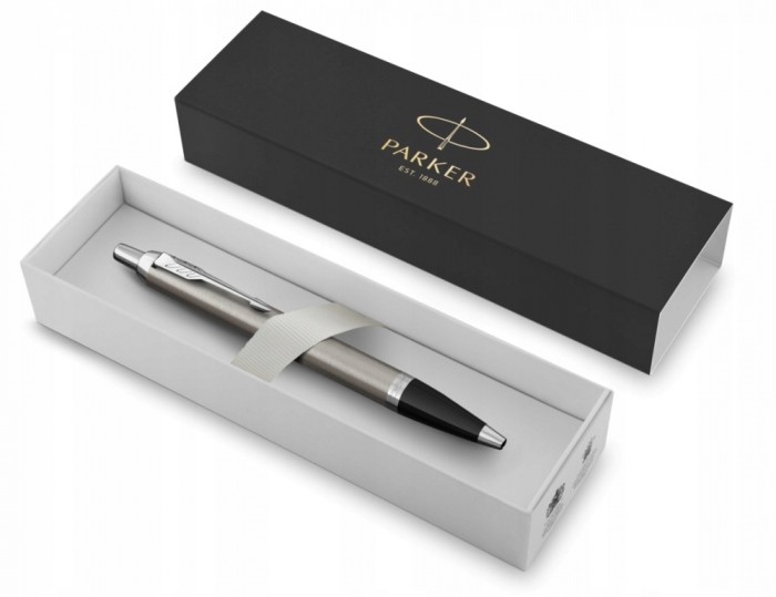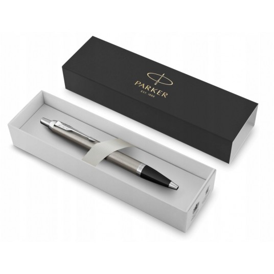 - Korpus długopisu Parker IM Essential Stalowy CT wykonano z mosiądzu pokrytego lakierem o kolorze szczotkowanej stali.