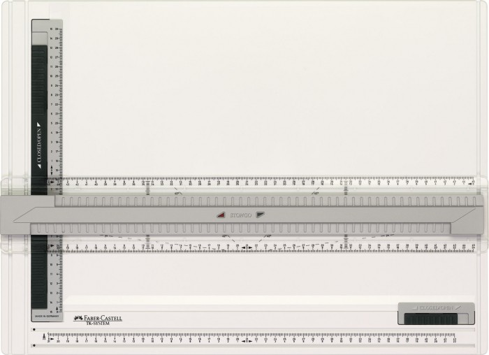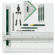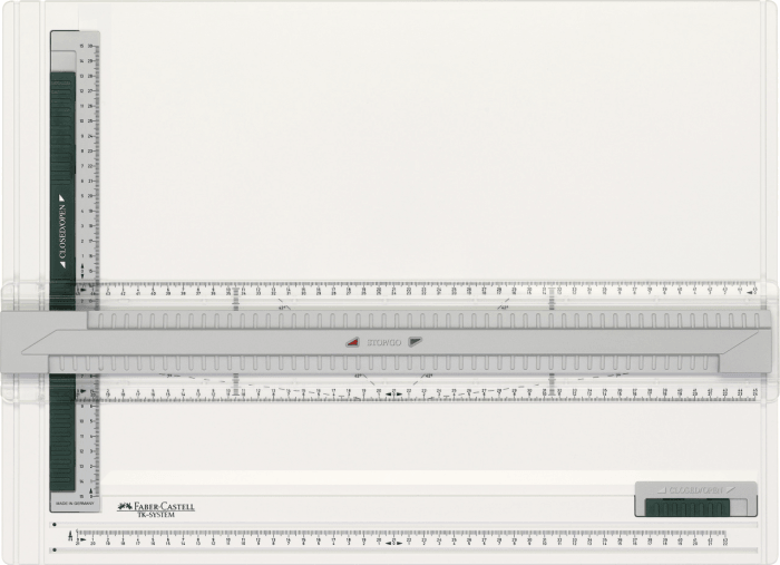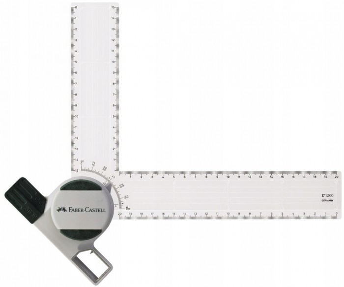- Przykładnica z liniami 7° i 42° do wykonywania rysunków izometrycznych.