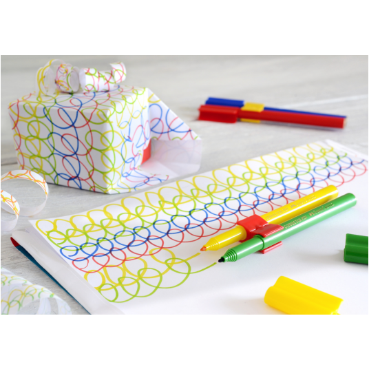 - Dzięki specjalnym klipsom pisaki można ze sobą łączyć w kreatywne konstrukcje.