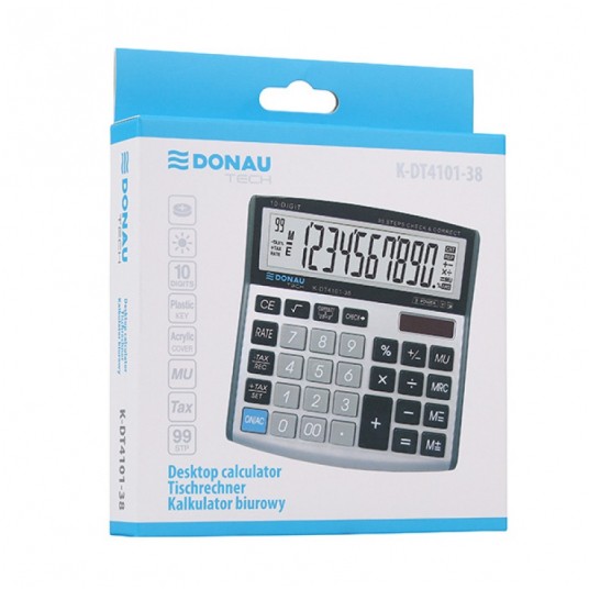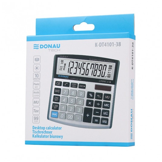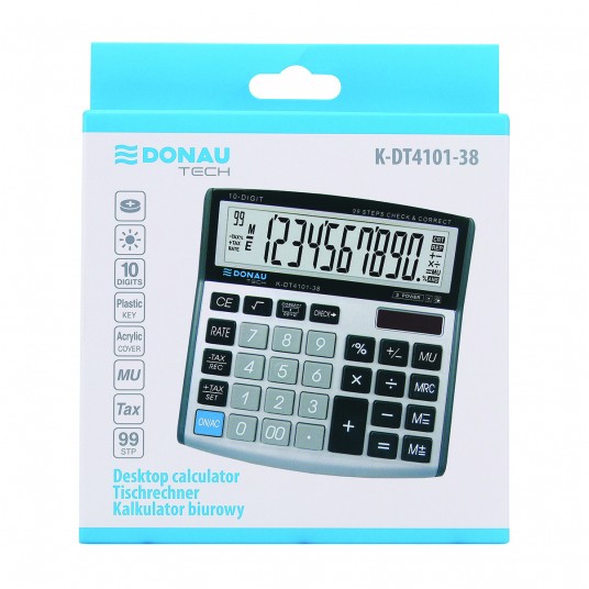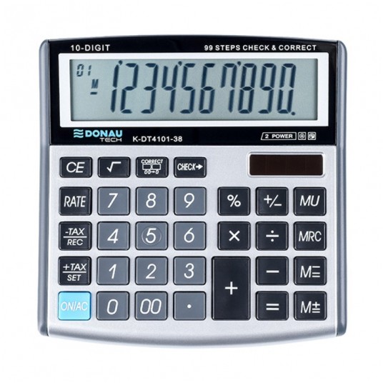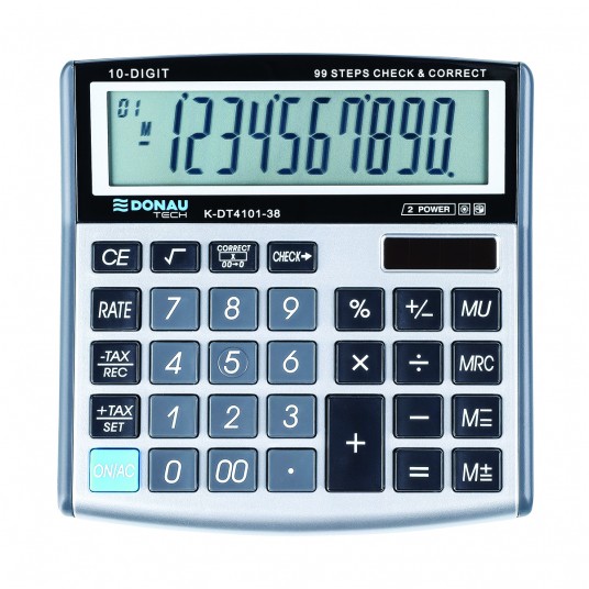 - Kalkulator biurowy z 10-cyfrowym wyświetlaczem z zasilaniem bateryjno-solarnym - Wymiary: 136 x 134 x 28 mm - Funkcja pierwiastka kwadratowego oraz obliczania procentów, obliczanie marży MU, obliczenia podatkowe TAX=+ TAX- , sprawdź i popraw CHECK & CORRECT, podwójne zero, kasowanie ostatniej pozycji, pamięć - Wyłącza się automatycznie - 5 lat gwarancji - Kolor: srebrny