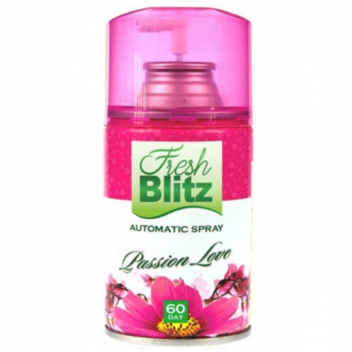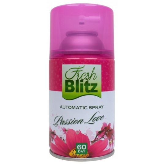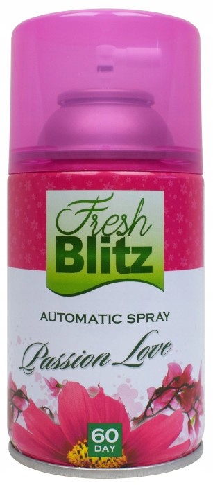 - PASSION LOVE to perfumowany, radosny, kwiatowy zapach. W zapachu PASSION LOVE kwiatowe akcenty doskonale połączyła delikatnie słodka,perfumowana nuta - Nie tylko odświeża, ale i neutralizuje nieprzyjemne zapachy - Wydajność: 60 dni zapachu – 3000 dozowań - Fresh Blitz 260 to bardzo dobrej jakości odświeżacz powietrza 3 w 1 – nie tylko odświeża, ale i neutralizuje nieprzyjemne zapachy, pozostawiając przyjemną nutę zapachową w Twoim biurze i domu - Wydajność: 60 dni zapachu – 3000 dozowań (przeważnie wkłady oferują 2000-2200 dozowań) - Wkład pasuje do większości elektronicznych urządzeń rozpylających m.in.: Merida, Air Wick Freshmatic