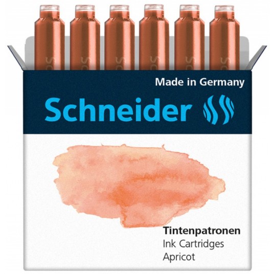 - Klasyczne, uniwersalne naboje do piór w kolorach pastelowych (pasują także do piór wiecznych spoza oferty Schneider) - Wysokiej jakości atrament gwarantuje ciągłą linię pisania - Kod kreskowy umieszczony na każdym produkcie - Kolor atramentu: apricot (morelowy) - 6 szt. w j.s.