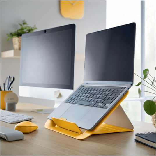 - Ergonomiczna konstrukcja podstawki zapewnia komfort w czasie pracy - Idealna do pracy zarówno w pozycji siedzącej, jak i stojącej, przyczynia się do poprawy ogólnego stanu zdrowia i wspiera produktywność - Podnieś laptopa, aby ustawić ekran na optymalnej dla oczu wysokości - Podstawki umożliwiają przepływ powietrza pod urządzeniem, co poprawia chłodzenie baterii i innych komponentów - Szybkie i łatwe dopasowanie ustawienia podstawki do indywidualnych potrzeb dzięki możliwości wyboru wysokości wśród 4 opcji - Kompaktowa, zajmująca niewiele miejsca, idealnie sprawdzi się jako podstawka pod laptopa na biurku - Składana - łatwo ją przechować, gdy nie jest używana - Elementy gumowe i zintegrowany uchwyt zapewniają bezpieczne i stabilne umieszczenie laptopa na podstawce, zapobiegają jego przesuwaniu - Przeznaczona do laptopów z ekranem o przekątnej od 13" do 17" - Podstawka wymaga korzystania z zewnętrznej klawiatury i myszy (sprzedawane oddzielnie) - Kolekcja Leitz Ergo Cosy łączy stylowe wzornictwo z najwyższą jakością wykonania, umożliwiając stworzenie zdrowego i produktywnego środowiska pracy - Kolor: żółty - Wymiar: 312 x 50 x 247 mm.