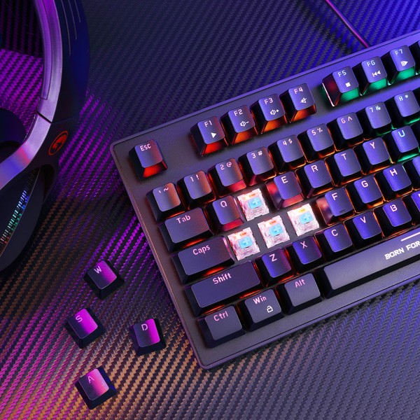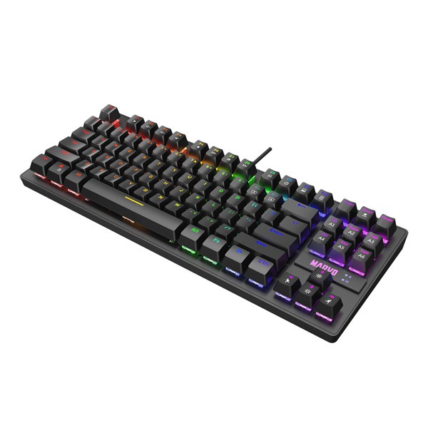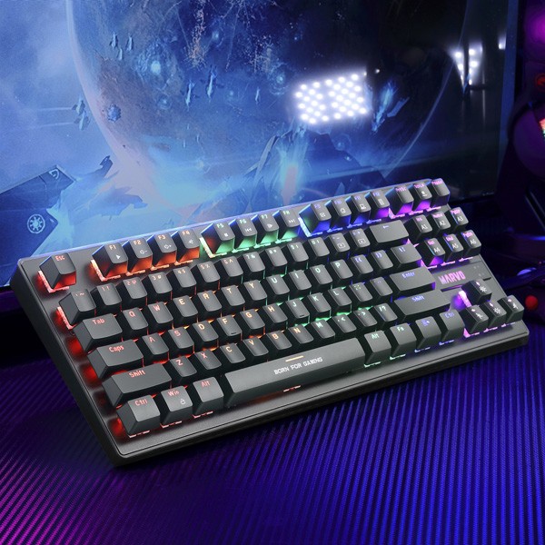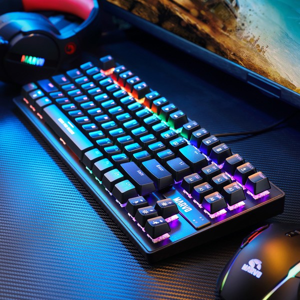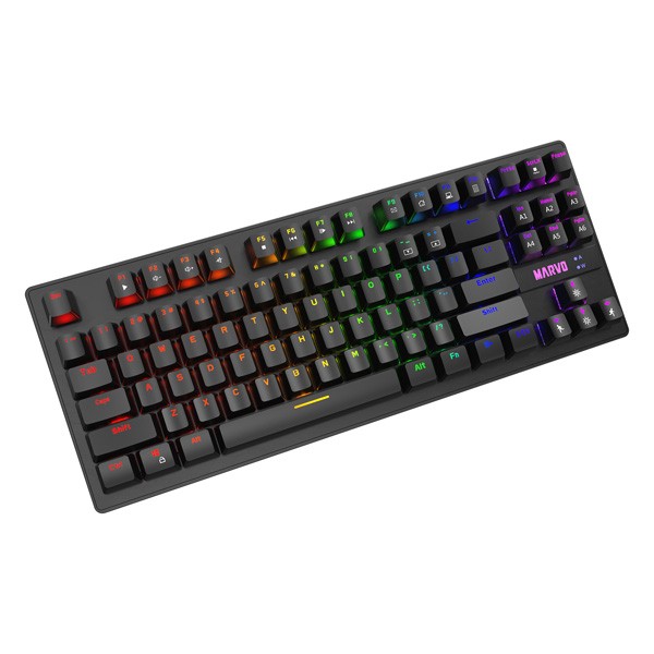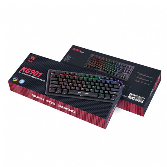 - Klawiatura Marvo KG901 stanowi idealny wybór dla profesjonalnych graczy, którzy nie chcą iść na kompromis, ale oczekują maksymalnej precyzji, szybkości oraz trwałości - Została wyposażona w zaawansowane, niebieskie przełączniki mechaniczne charakteryzujące się wyraźnie słyszalnym kliknięciem i dobrze wyczuwalnym przeskokiem - Marka Marvo - Model: KG901 - Klawiatura CZ SK - Przeznaczenie: do gry - Niebieskie przełączniki - Rodzaj: przewodowa USB - Rodzaj: mechaniczna - Kolor: czarna+podświetlenie - Długość: 4 cm - Szerokość: 16 cm - Wysokość: 37 cm - Waga: 0,3 kg