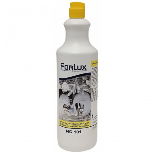 - Forlux NG to silnie skoncentrowany płyn do usuwania wszelkiego rodzaju osadów mineralnych (wapiennych) w zmywarkach mechanicznych, bemarach, kotłach i ekspresach do kawy. - Bezpieczny dla powierzchni ze stali kwasoodpornej, glazury, ceramiki, szkła oraz tworzyw sztucznych. - Zawiera substancje chroniące powierzchnie przed korozją. - Nie należy stosować do emalii, aluminium, ocynkować i metali kolorowych. - Preparat do użytku profesjonalnego. - Pojemność: 1l.