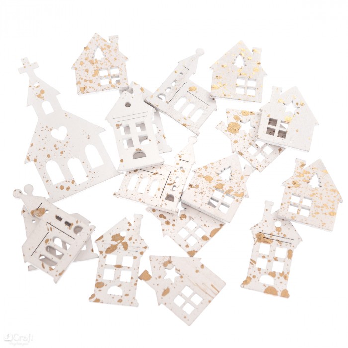 - Domki z drewna gęsto pokryte z obu stron złotym, srebrnym i opalizującym brokatem, które podkreślą magię świąt i dodadzą blasku zimowym projektom kreatywnym - Efektowna ozdoba do pakowania prezentów, dodatek do ręcznie robionych kartek okolicznościowych, albumów, pudełek i zawieszek - Wzbogacą stroiki, wieńce, przestrzenne kompozycje i samodzielnie robione bombki oraz elementy świątecznego stołu (winietki, obrączki na serwetki) - Wielkość: 1,7 x 2,2 cm - W opakowaniu: 17 szt.