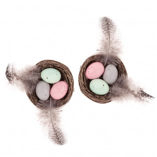 Gniazdka dekoracyjne 5,5cm 2 szt. jajka i piórka